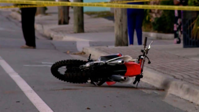 Video obtained by CBS affiliate WPEC shows the boy, Stanley Davis Jr., pulling up at a nearby Chevron gas station shortly before the incident. He goes inside to pay, wearing his helmet. Then he rides away and a police vehicle follows him down the street.