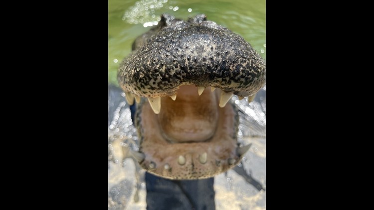 Patience is small now, but alligators can live to be about 100 years old, West says. Males can grow to about 16 feet, females about eight to ten.