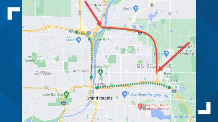 The closure will be between US-131 and Leonard Street with traffic being detoured via US-131 and I-196.