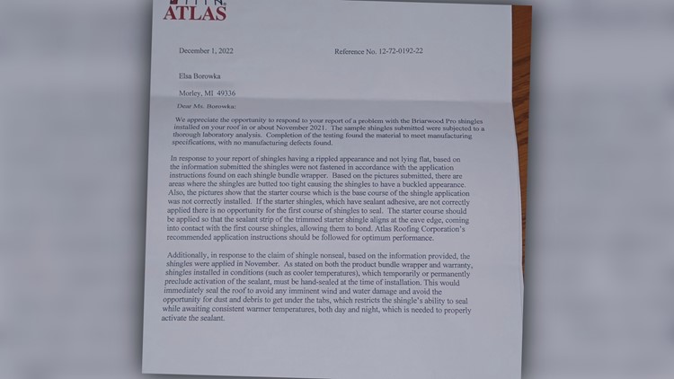 But the Borowka’s said the shingles were not the issue. In fact, they sent some off for testing to see if the product was at fault, and the manufacturer responded in a letter, stating the product is not defective, it was just installed incorrectly.