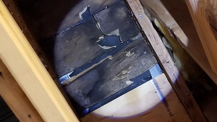 “We had gutters put up on the house back on May 28,” Joe said. “Those guys also do roofing, and they looked at the roof and were saying ‘something’s not right with your roof there.’ You know it was buckling and starting to peel off, pull the nails up. And it looked like little waves up there.”