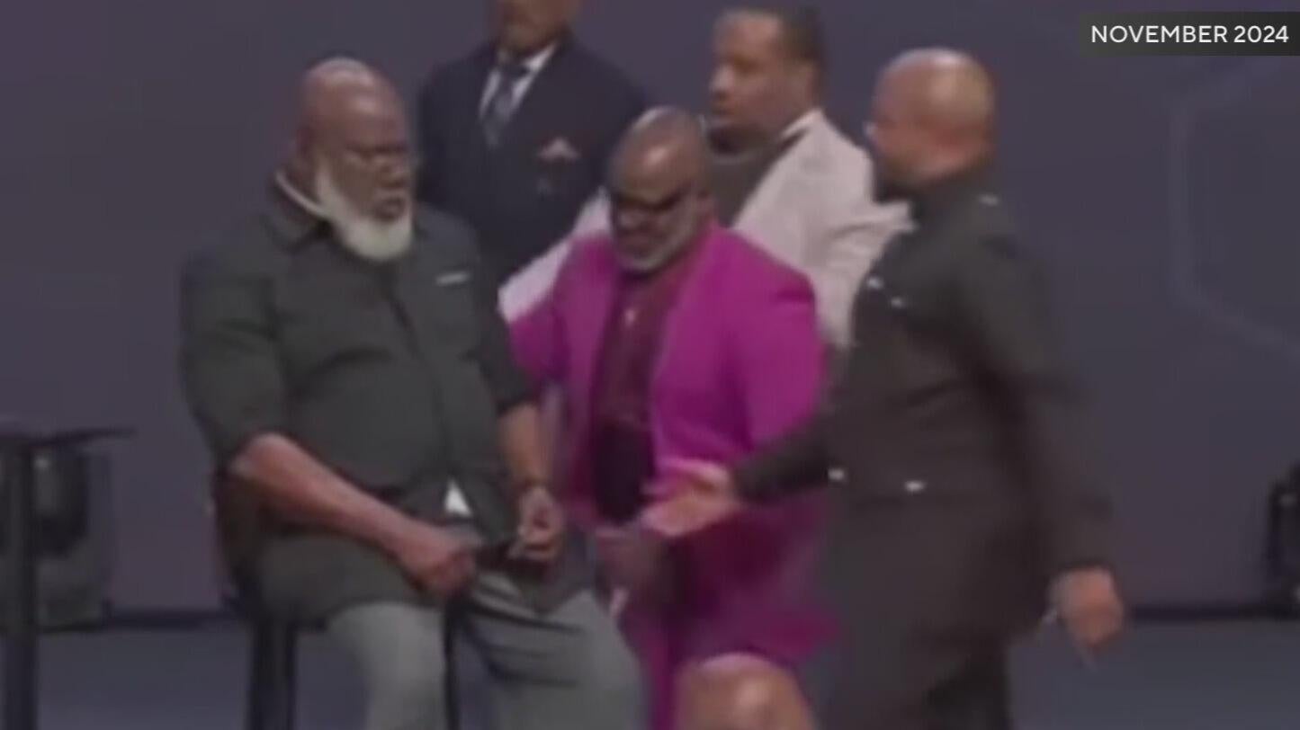 It was a shocking moment in Nov. 24, 2024 that was caught on video and went viral. Jakes was on stage finishing an hour-long sermon when he lowered his mic and began to shudder. A crowd of people quickly rushed over and surrounded him on stage.